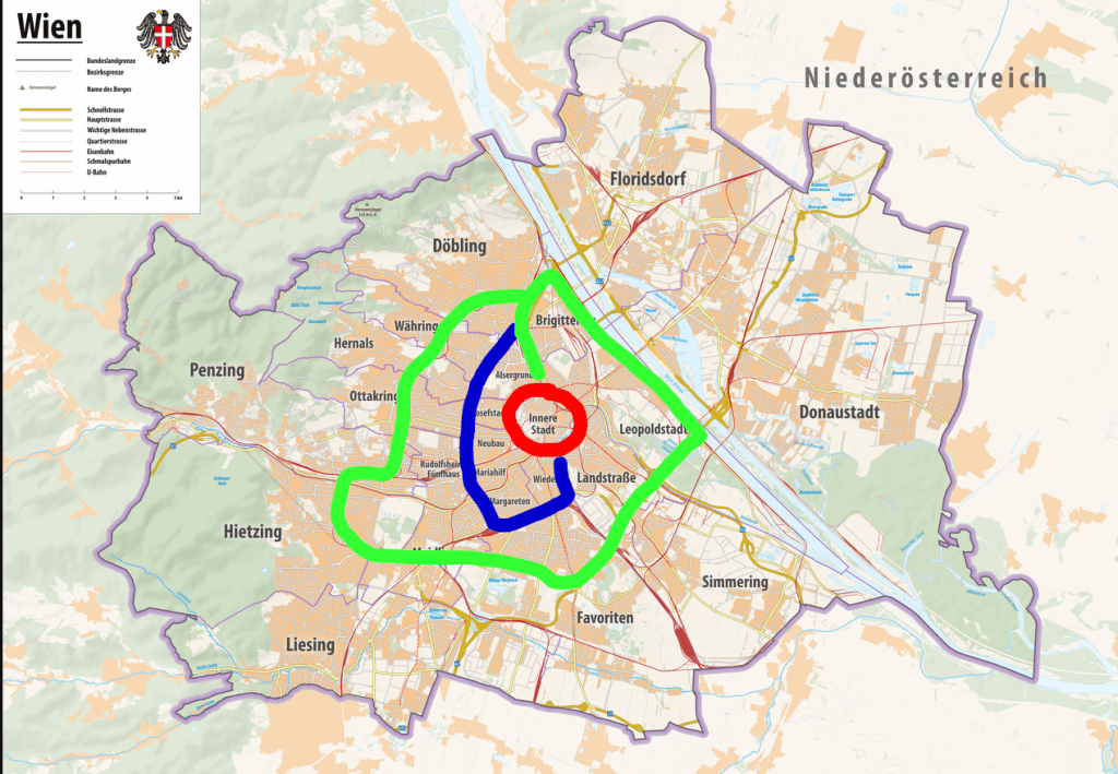The second ring is Gürtel, which covers 4, 5, 6, 7, 8, and 9 districts. Transportation options are great. You can find restaurants, pubs, and all kinds of events. Museums and everything you need are within 15 minutes by walk or tram. If you want to live in the city, this is a pricey part of the city. You can still feel this old scenery of Vienna.